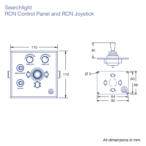 | Fjernkontroll RCN med joystick | 115VAC 50/60Hz | GX16d | 1000W | 630m | 12°x6° | 400.000 | 210RCN110JOY |
