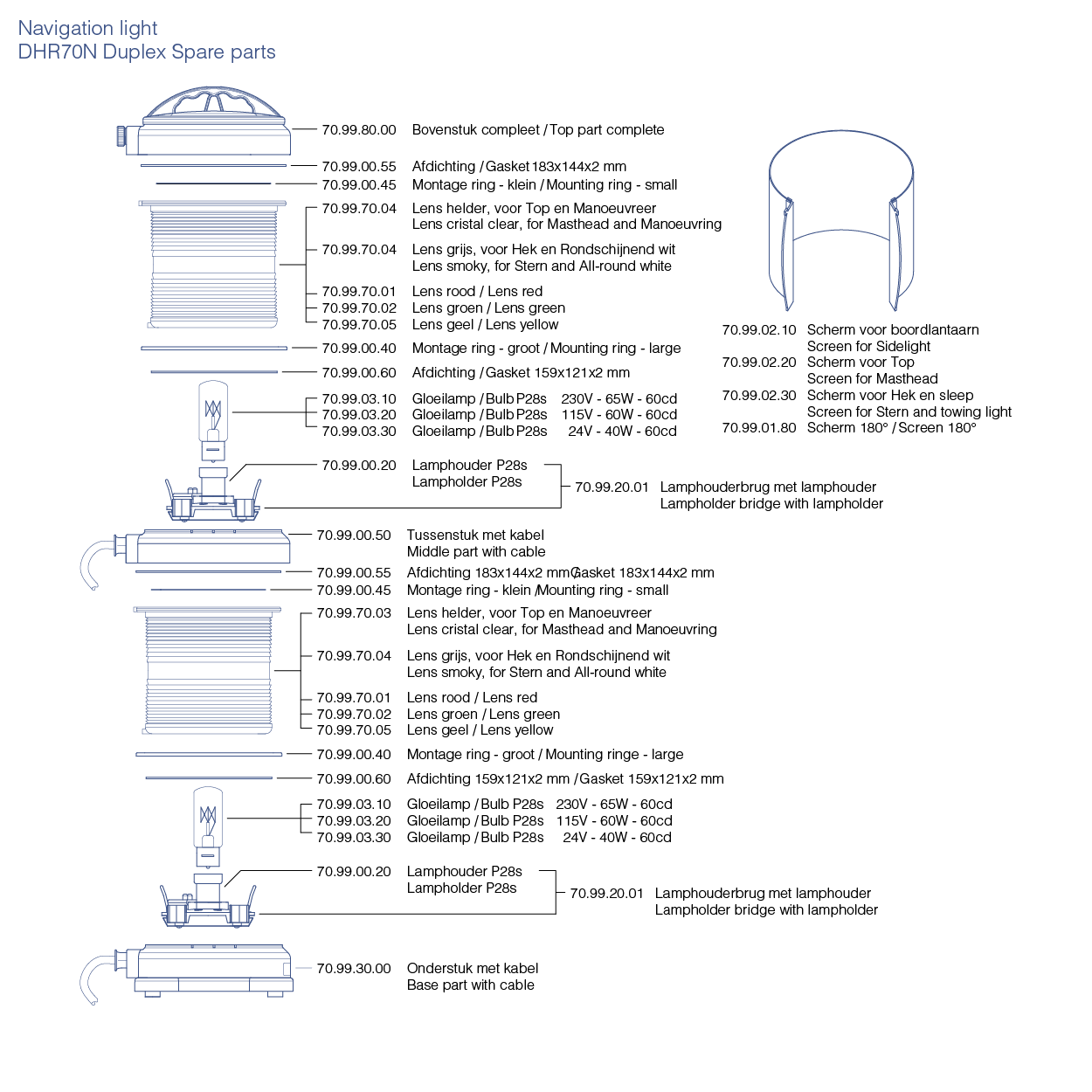 | Allround hvit | 3 NM | P28s | COLREG’72 – RPR/BPR | 70.26.00.00 | 70.26.01.80 |