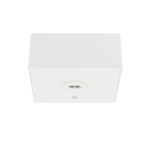 Firkantet, overflatemontert LED rømningsveilys. Standard leveres med 3 timer batteridrevet nødkrets og alternativ for selvtesting.