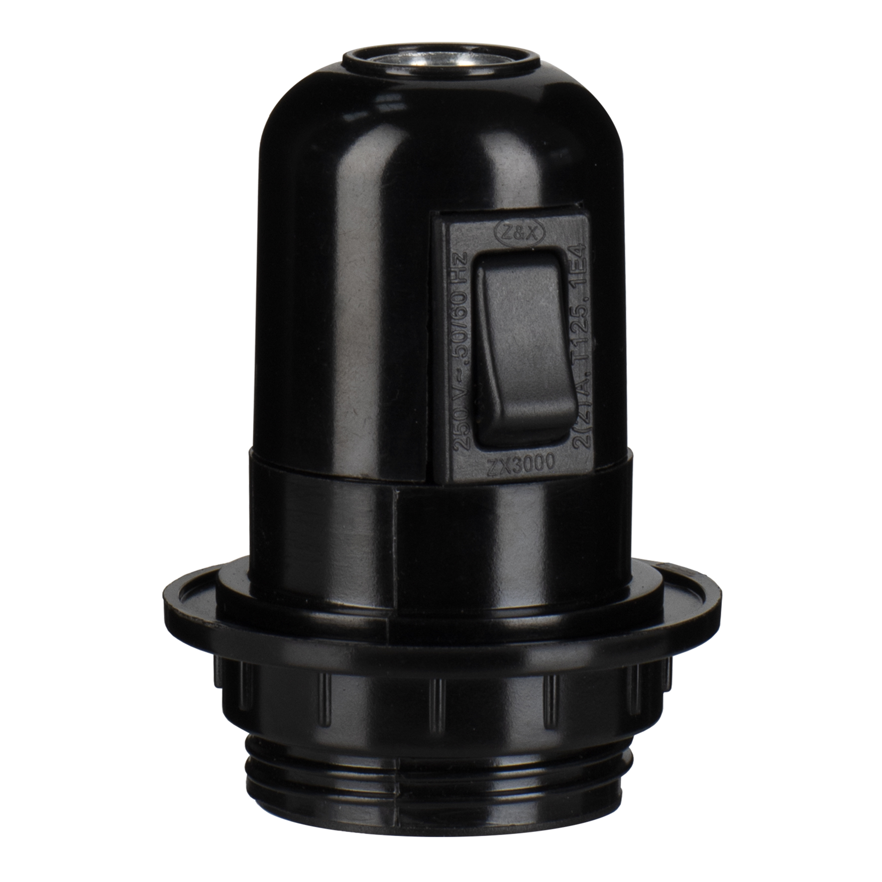 BAI Lampholder E27 Bakelite M10x1 Black Half threaded outer shell with switch 43x76mm