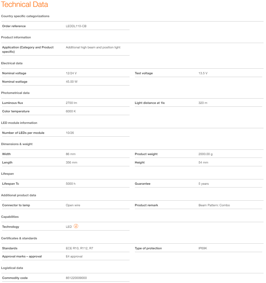 Enten på vei eller på vei – OSRAM LEDriving Lightbar MX250-CB imponerer med sin kraftige ytelse og lange levetid med opptil 5000 timer. Allsidig anvendelig, den trosser mange miljøpåvirkninger, og takket være materialer av høy kvalitet som aluminiumshuset og den stabile polykarbonatlinsen, er den spesielt lett og samtidig robust og motstandsdyktig. OSRAM LEDriving Lightbar MX250-CB er testet og validert med IP-beskyttelsesklasse IP69K i vårt DIN-sertifiserte miljøsimuleringslaboratorium for ekstreme ytre påvirkninger angående vann, støv, støt, varme, kulde og permanent vibrasjon. Den integrerte driveren og det termiske styringssystemet regulerer temperaturen på LED-lysstangen og kan dermed forhindre skader fra overoppheting. Polaritetsbeskyttelsen hemmer feil polaritet i spenningsforsyningen og kan dermed forhindre mulig skade ved automatisk å slå av lysdiodene. OSRAM LEDriving Lightbar MX250-CB på vei og offroad er et effektivt og effektivt tillegg til bilen din. Ingen registrering eller oppføring i kjøretøydokumentene er nødvendig for disse ECE-sertifiserte LED-kjørelysene2).